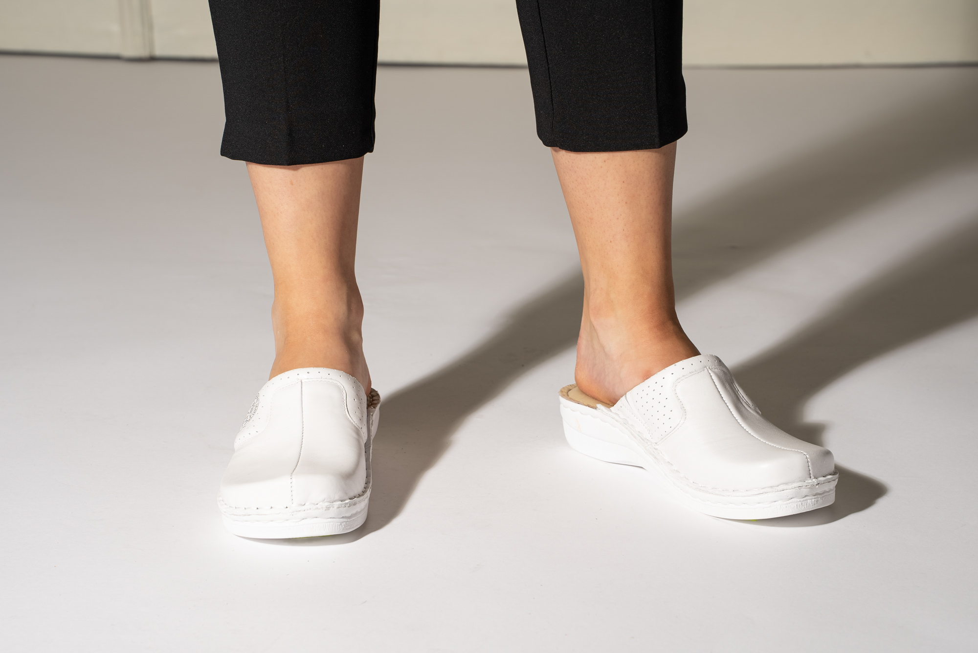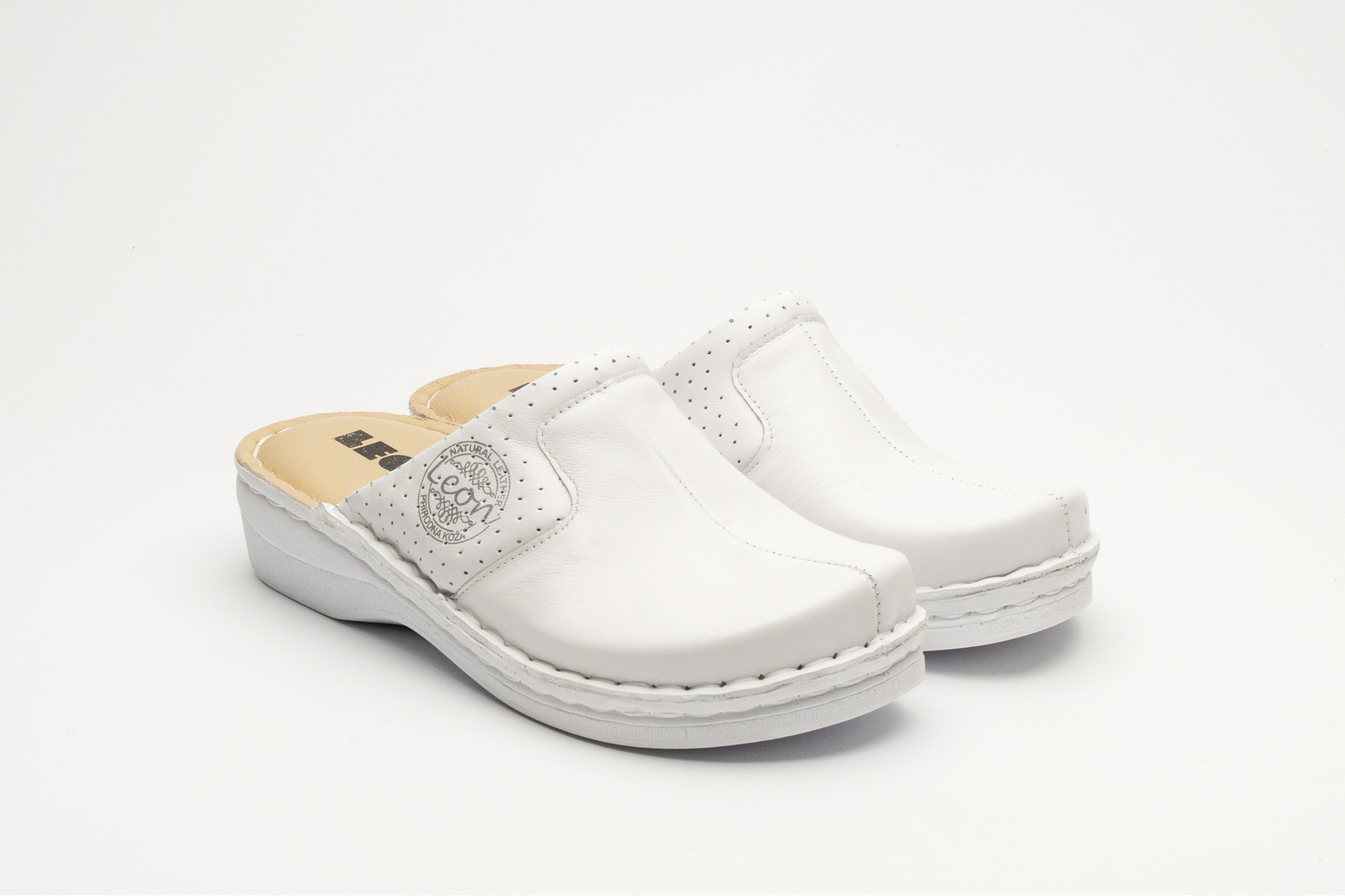 Ženska papuča izrađena od prirodne kože i kožnom tabanicom koja sadrži masažni gel. Đon je naparvljen od poliuretanske mase koji sadrži anti – slip čep koji sprečava klizanje