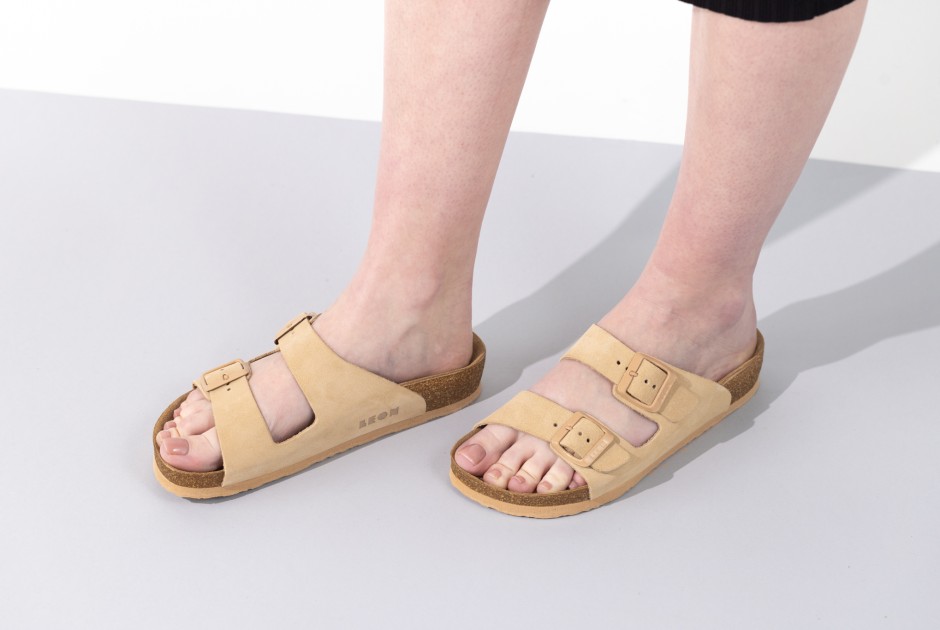 Ženska anatomska papuca sa posebno oblikovanim gazištem, masažnim gelom. Izrađena od prirodnog materijala – koža, i poliuretanskim đonom.