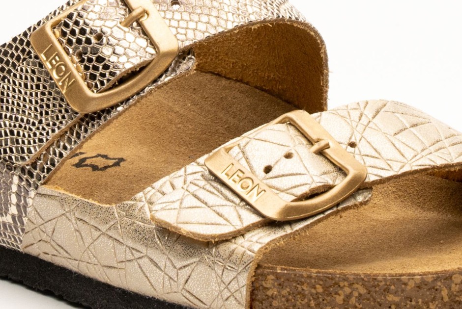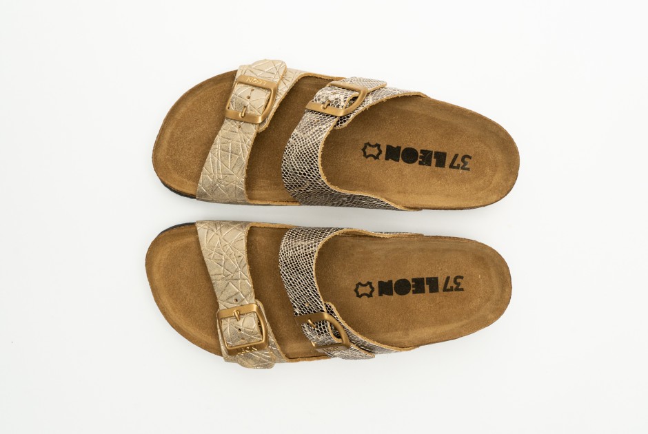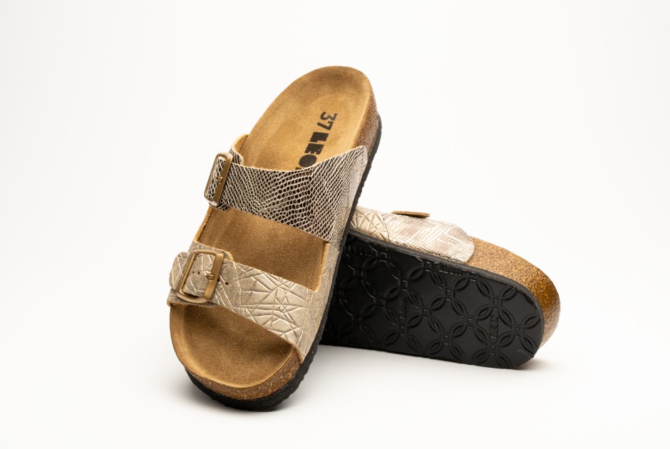 Ženska anatomska papuca sa posebno oblikovanim gazištem, masažnim gelom. Izrađena od prirodnog materijala – koža, i poliuretanskim đonom.