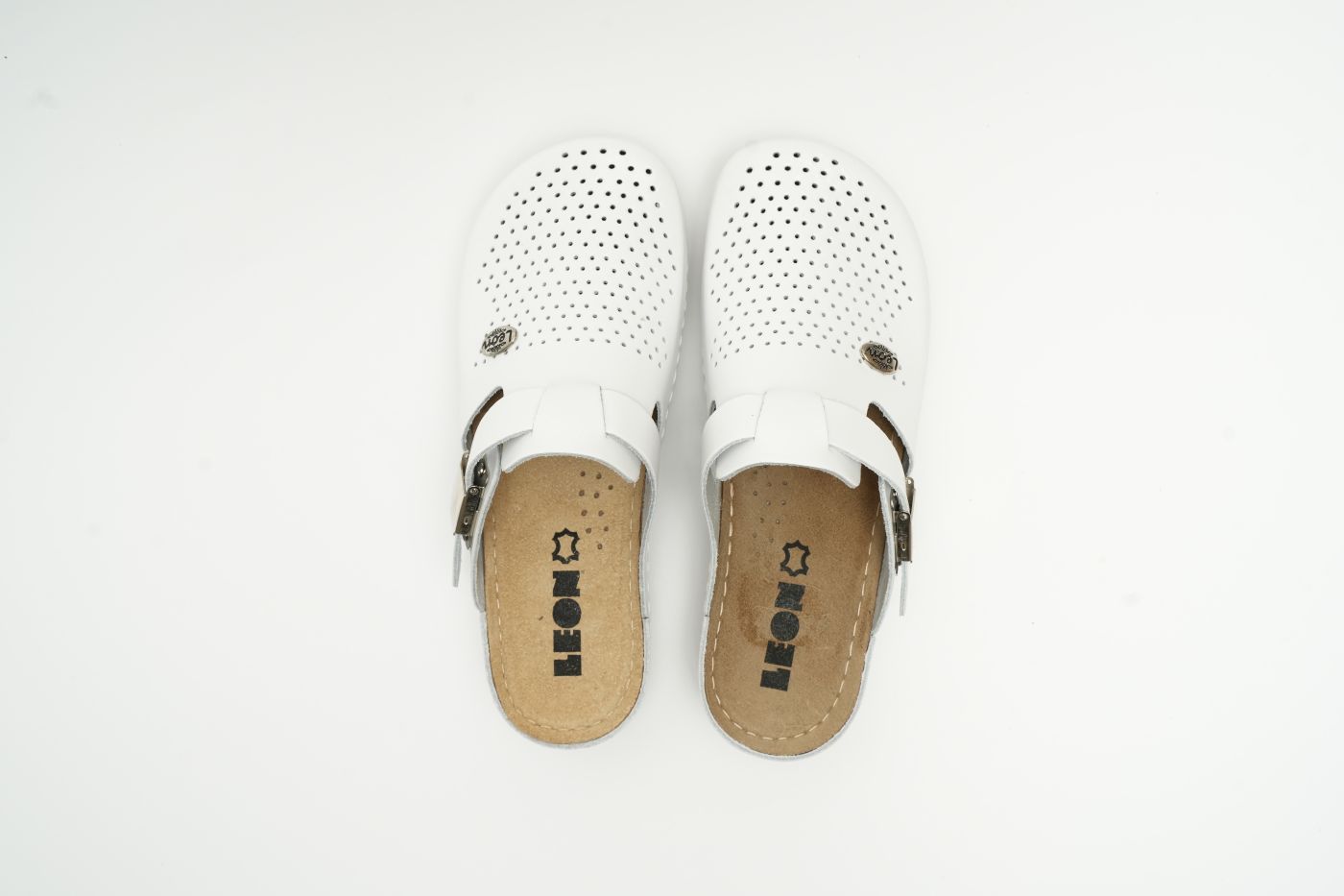 Ženska papuča izrađena od prirodne kože sa ventilirajućim rupicama i kožnom tabanicom koja sadrži masažni gel. Đon je naparvljen od poliuretanske mase koji sadrži anti – slip čep koji sprečava klizanje