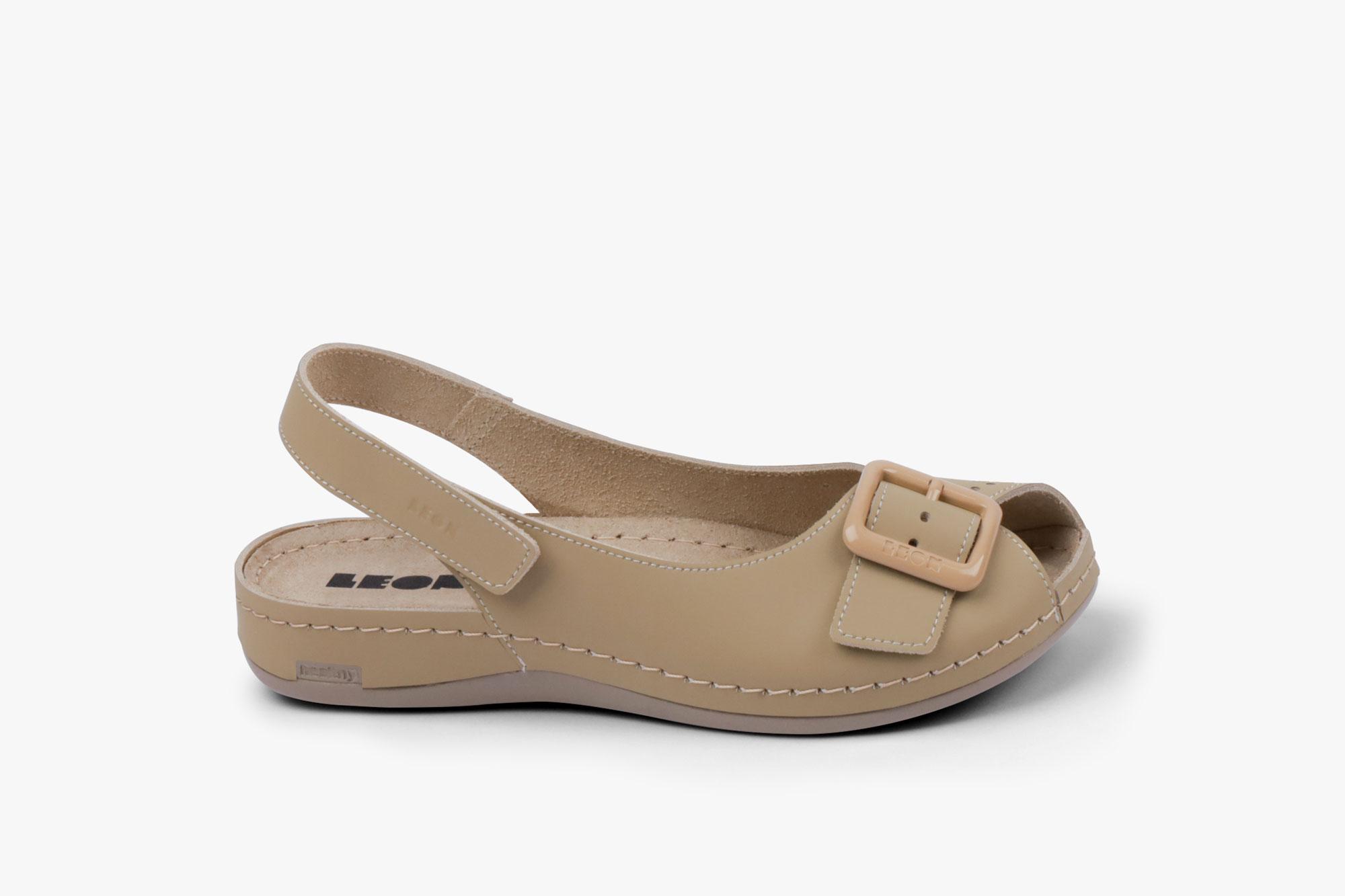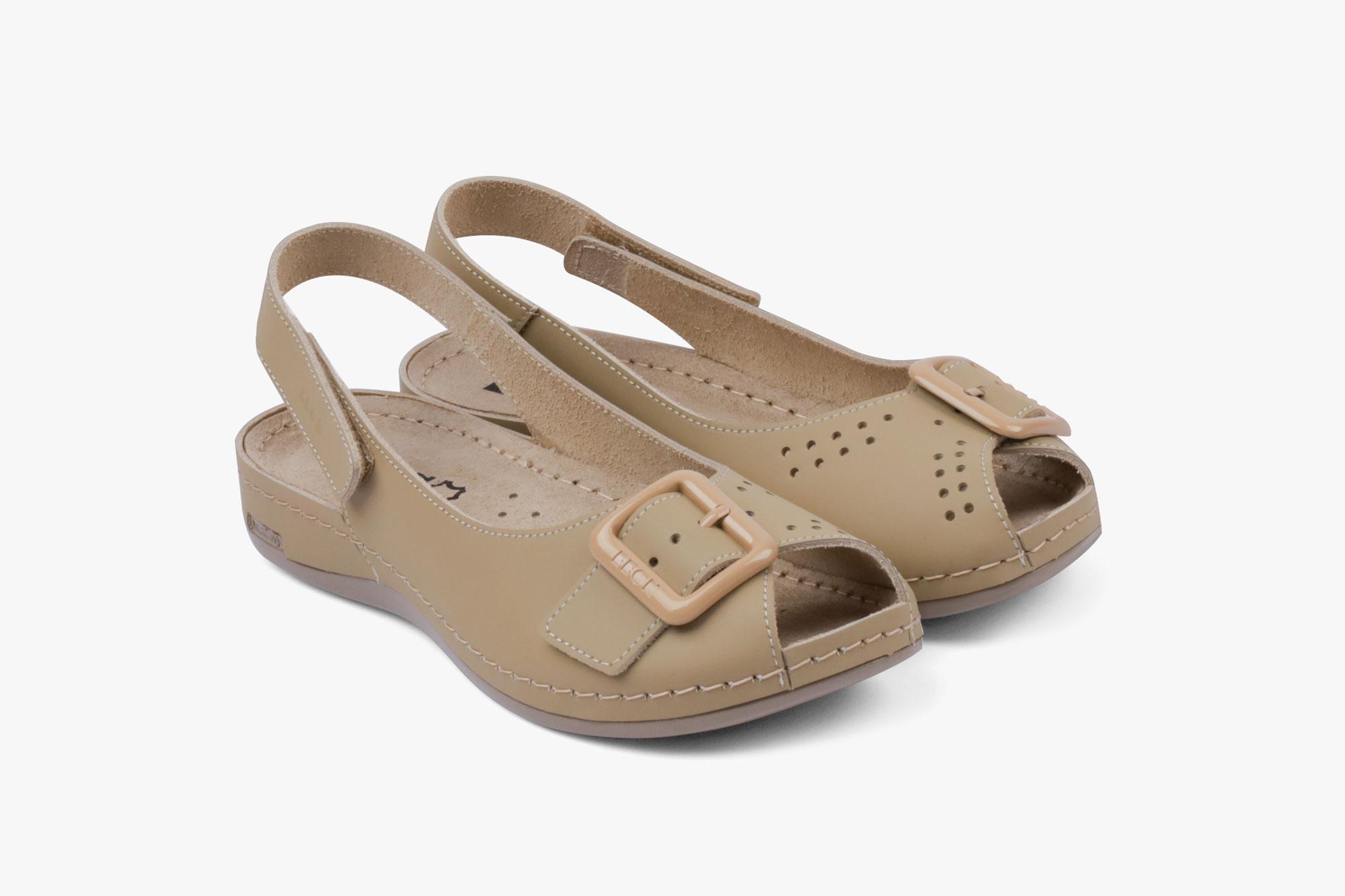 Ženska sandala izrađena od prirodne kože i kožnom tabanicom koja sadrži masažni gel. Đon je napravljen od poliuretanske mase koji sadrži anti – slip čep koji sprečava klizanje.