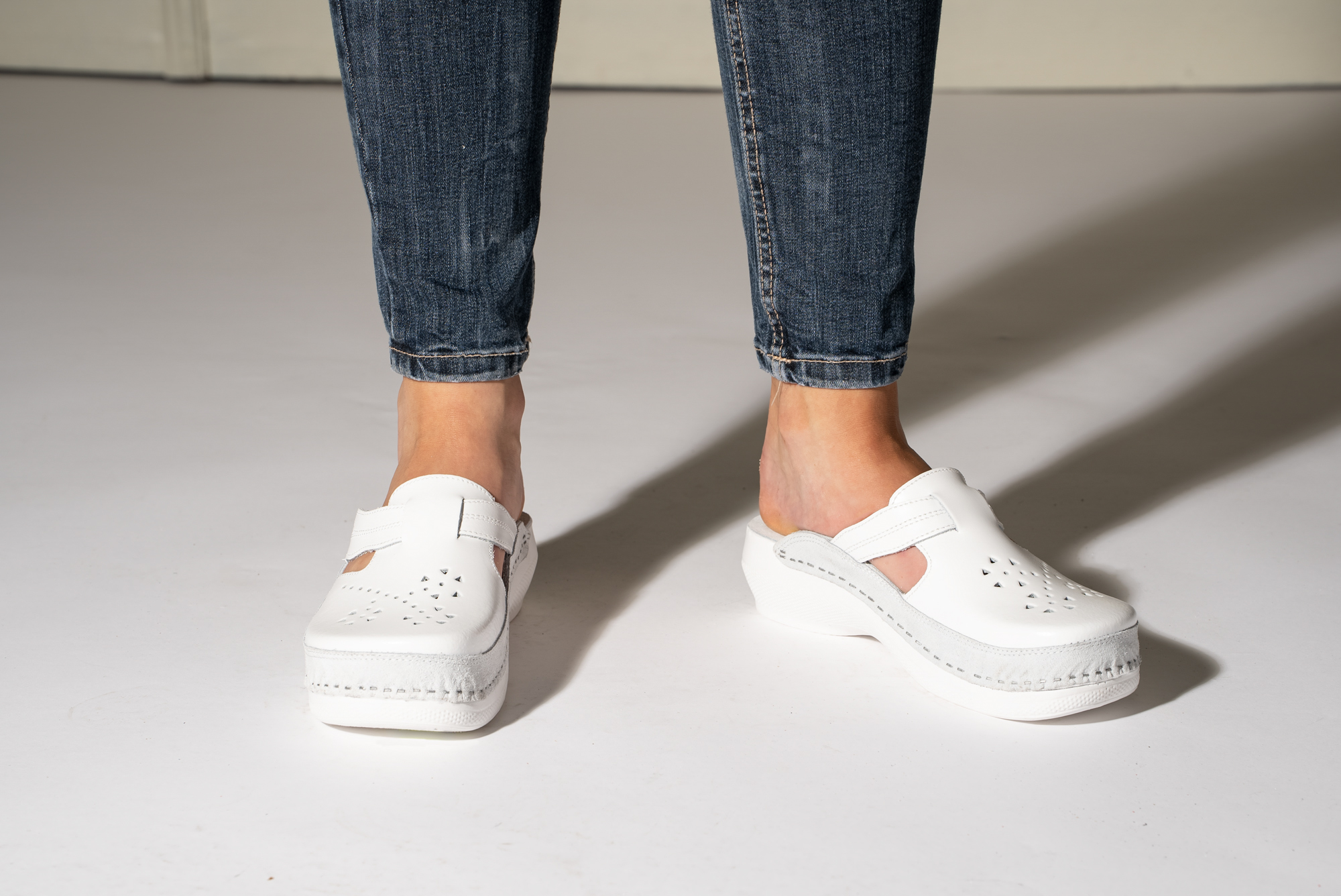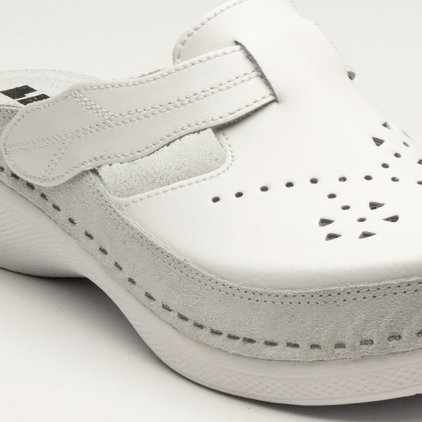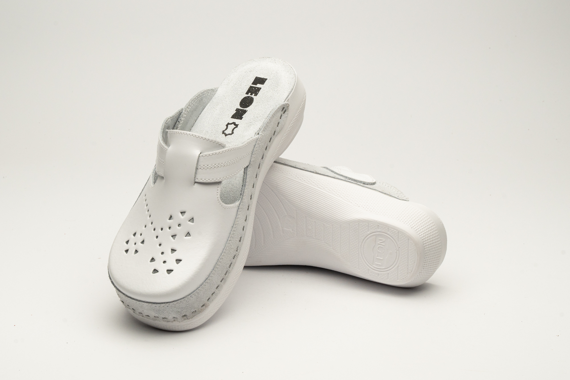 Klompa izrađena od prirodne kože sa ventilirajućim rupicama i kožnom tabanicom. Đon je naparvljen od poliuretanske maseSastav lica: Prirodna kožaTabanica: Prirodna koža sa anatomskim gazištem i mekanim gel uloškomĐon: Poliuretan